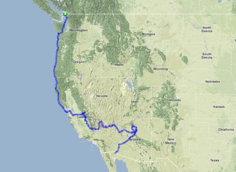 But before I open myself up to ridicule, here’s the route I took through the ‘Lower 48’ and some tour statistics: